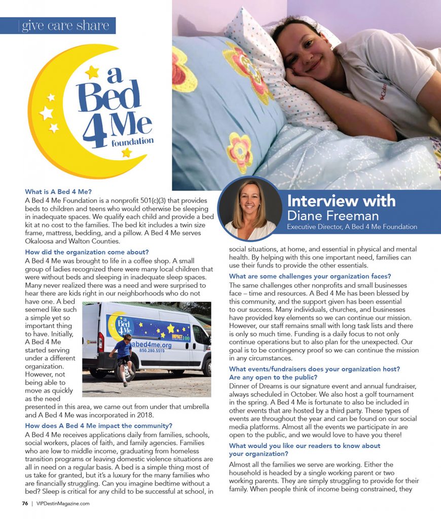 Give Care Share – A Bed 4 Me 0 By vipmagazine_admin on November 4, 2025 VIP Features, VIP Features2 Share. Twitter Facebook Google+ Pinterest LinkedIn Tumblr Email